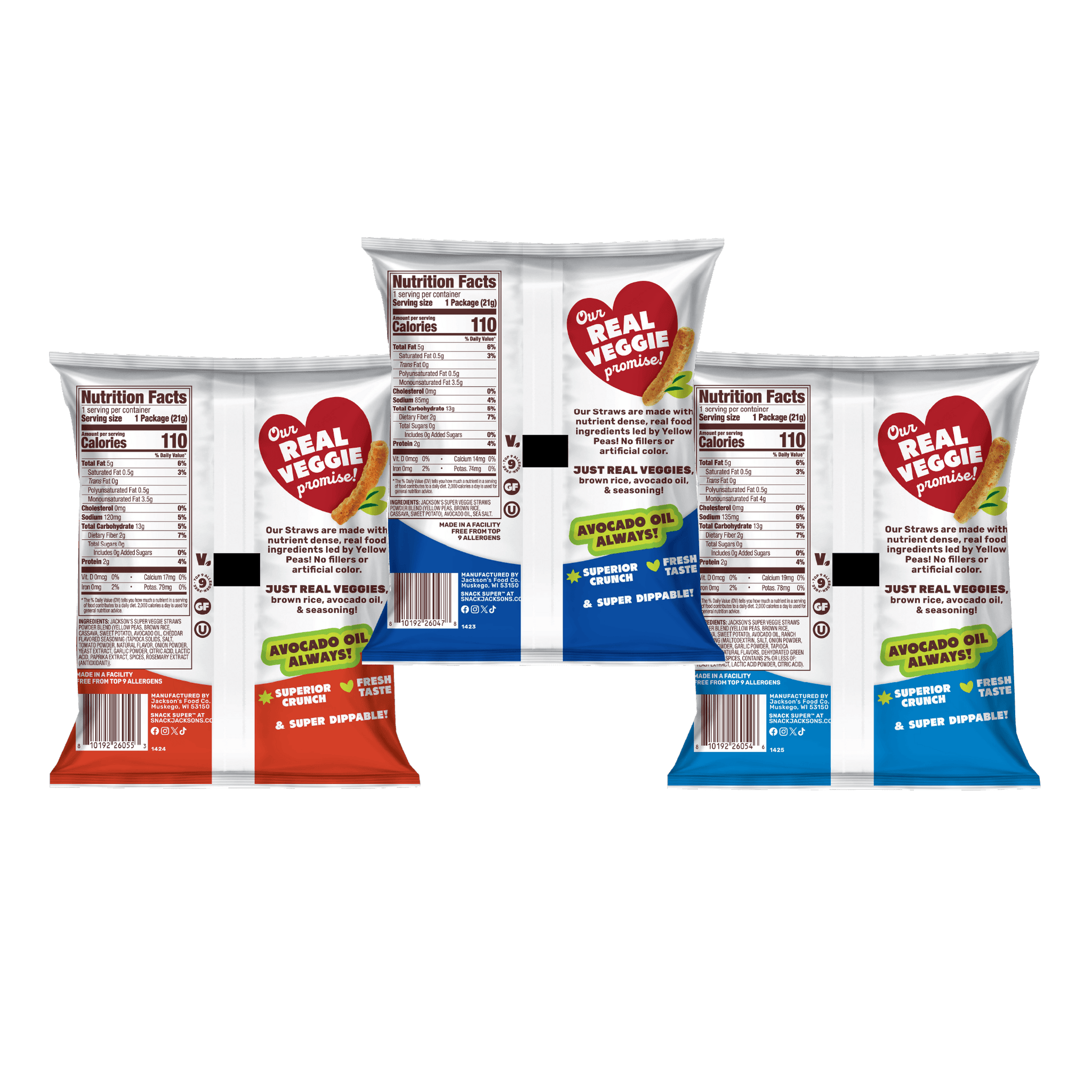 Jackson's Super Veggie Straws vs other brands - see why our avocado oil, real veggie ingredients, and allergen-free facility make the difference. Discover superior crunch and taste with better-for-you, minimally processed veggie straws.